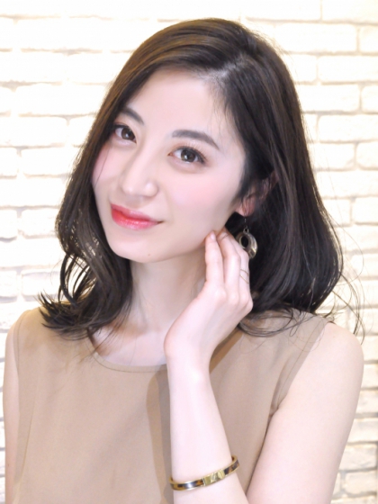 重く見えがちなセミロングヘアには透け感とゆるっと感が必須☆軽やかに見えるように、ゆるくびれで、ラフさUP